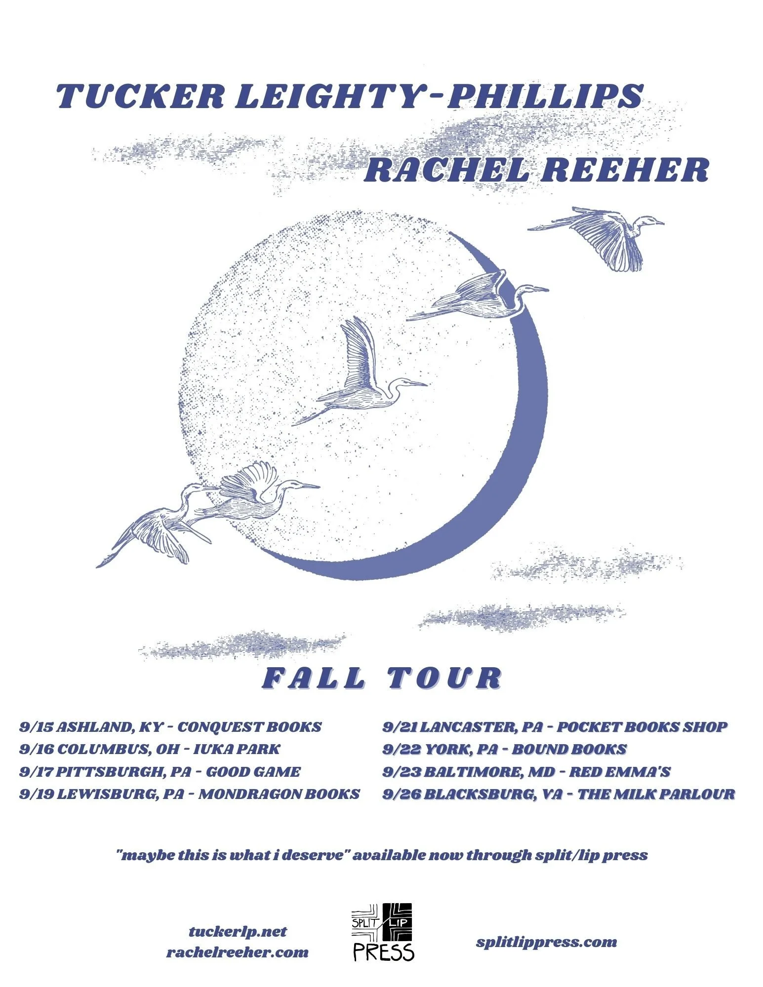 Last Summer, I published my first chapbook with Split/Lip Press, a short story collection entitled Maybe This Is What I Deserve. I made the decision to pursue writing after years working in the music industry; as a show promoter, tour manager, and merch person for a number of national touring bands. Despite my constant proximity to art, I was not a practicing artist myself; I couldn’t even play an instrument. I was envious of my musical friends, and when I left the industry to attend college, I took a couple of creative writing classes and discovered my own aptitude and passion for the craft. There was no doubt in my mind, if I ever published a book, I would do a tour of my own. And in September 2023, I embarked on a twelve-day tour with fellow writer (and my now-fiancée!) Rachel Reeher.