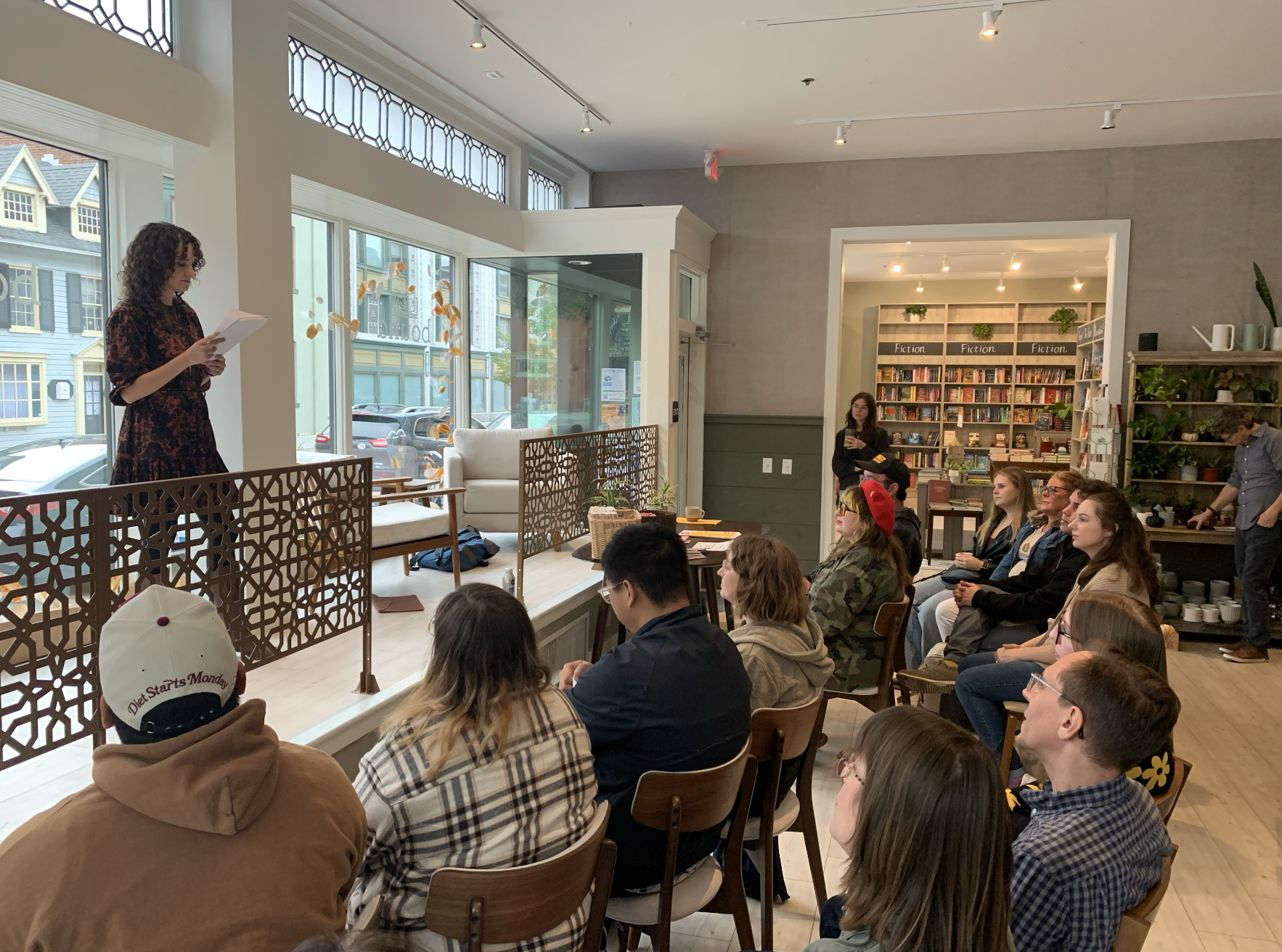 Clayton was dedicated to finding the perfect space for our event, and put me in touch with bookstores, coffee shops, bars, and other places in town, but nothing seemed to be coming through. He was working as a mediator more than an event promoter, but as rejections piled up, he decided to take things into his own hands, and organized the event himself. His venue? The Glen Echo Bird Tunnel, or in layperson’s terms, a tunnel covered in bird graffiti in the middle of a city park. I was initially hesitant–the idea of performing in such a public space made me feel weird; I imagined passersby heckling, people avoiding the area as if I was an unruly street preacher. But I also saw the dedication and enthusiasm from someone inspired by my work, willing to go to great lengths to organize a reading, and trusted my sense of adventure. And ultimately, the event was a hit! There were thirty-ish people gathered, and the way each performance echoed throughout the tunnel created a charming acoustic experience (it is the Glen Echo Tunnel, after all). Although I love and support independent bookstores, I also understand they are overloaded with requests from writers. I highly encourage expanding your search to include any venue you think would be exciting and kind to your work. Bookstores are obviously great venues for author events–they’re equipped with the know-how to handle the logistics and promotion, but do not be afraid to stray from the path. I’ve performed in coffee shops, art galleries, dive bars, living rooms, community centers, porches, and many other alternative spaces. And in many cases, these were communities without dedicated book shops who have thriving literary scenes of their own–you just had to seek it out.